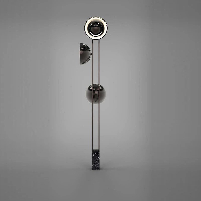 Lámpara de pie con luz LED de 15W, fabricada en metal con base de mármol.Color: negro.Dimensiones: diámetro de 30 cm, altura de 1.60 m