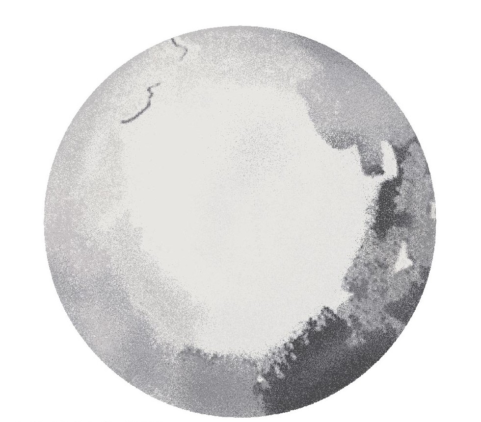 Alfombra Circular de diseño abstracto, elaborada con fibras polìmero sintèticas Dimensiòn: 1.5mts de diàmetro Espesor 12mm. Abito / Forma: CircularAbito / Tamaño: 1.50M